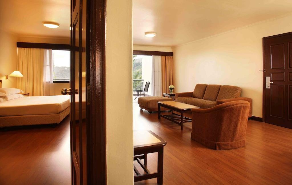 يتكون الفندق من عدد 345 غرفة، وتصميمه مميز ورائع، بعض الغرف تطل على المناظر الطبيعية الساحرة للمرتفعات، ويتوفر في كل غرفة معدات إعداد القهوة، وتلفاز، وفيديو، كما يحتوي الفندق على مطعم يقدم أشهى المأكولات الصينية والماليزية والتايلاندية، والفندق مصمم بشكل غاية في االتميز، ويوجد تكييف في كل غرفة.