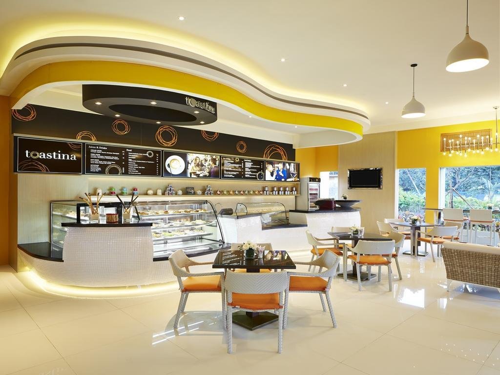 ويحتوي فندق شيراتون باندونق إندونيسيا على مطعم خاص وهو مطعم Feast والذي يتخصص في تجهيز الأطباق الآسيوية وذلك من أجل عشاق الأطباق اليابانية والصينية وما شابه ذلك كما يوجد مقهى وبار في فندق شيراتون باندونق إندونيسيا ويطل البار على حمام السباحة ويمكن الاستمتاع بتناول أكلات خفيفة ومشروبات مرطبة بالإضافة إلى كوكتيلات منعشة بالجلوس في التراس بجانب حمام السباحة الخارجي.