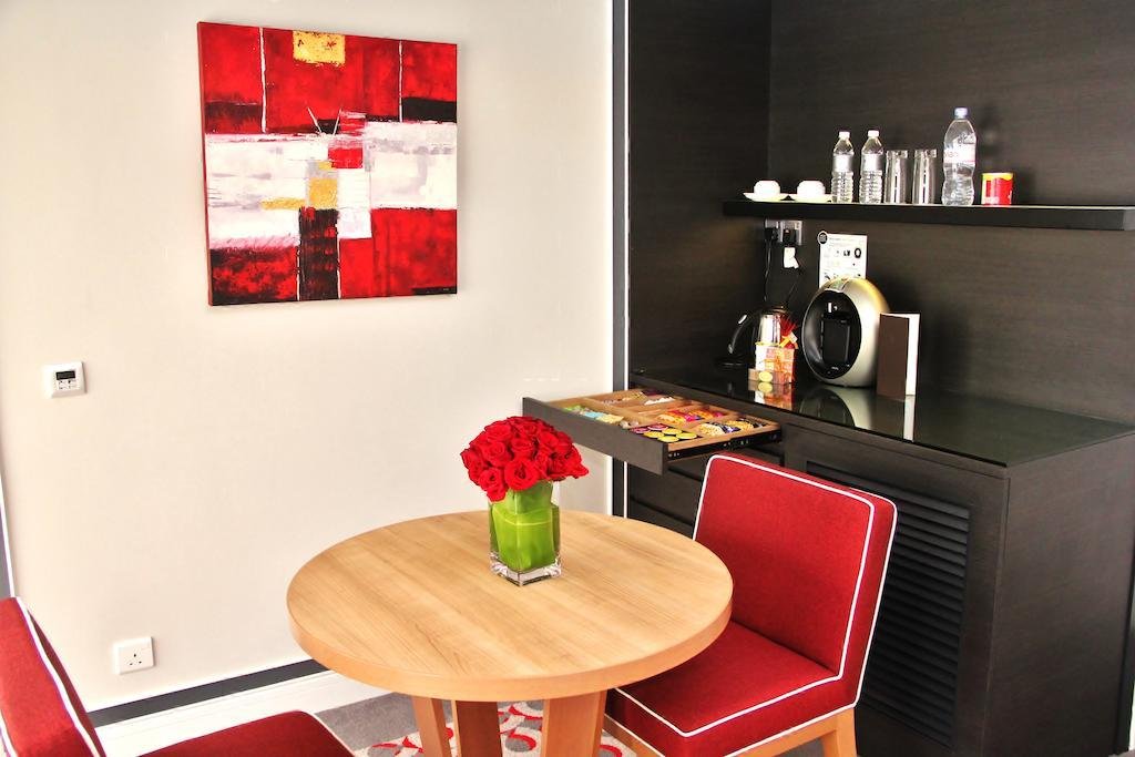 تم تجهيز غرف جراند ميلينيوم الأنيقة والعصرية بآلة صنع الشاي / القهوة. كما يتوفر تلفزيون مع قنوات الكابل ، كما توفر النوافذ الممتدة من الأرض حتى السقف إطلالات جميلة ما جعله من افضل وارخص فنادق في كوالالمبور.