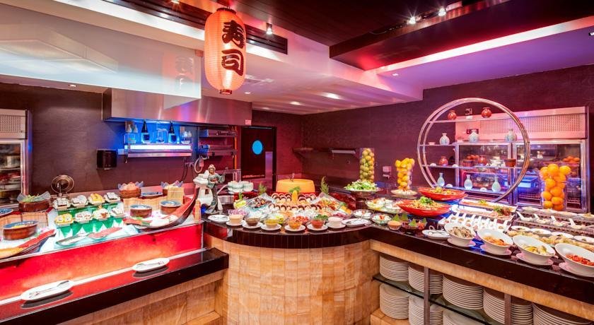 يمكن للضيوف تناول المأكولات الآسيوية والمتوسطية في مقهي الفندق ، في حين يقدم لاي تشينغ يوين الأطباق الكانتونية ، بما في ذلك ديم سوم. لتناول الأطباق اليابانية التقليدية ، توجه إلى مطعم هايانا الياباني.