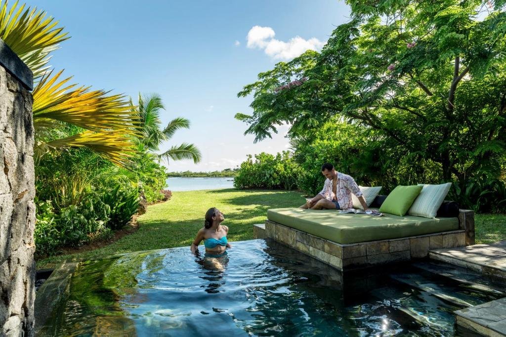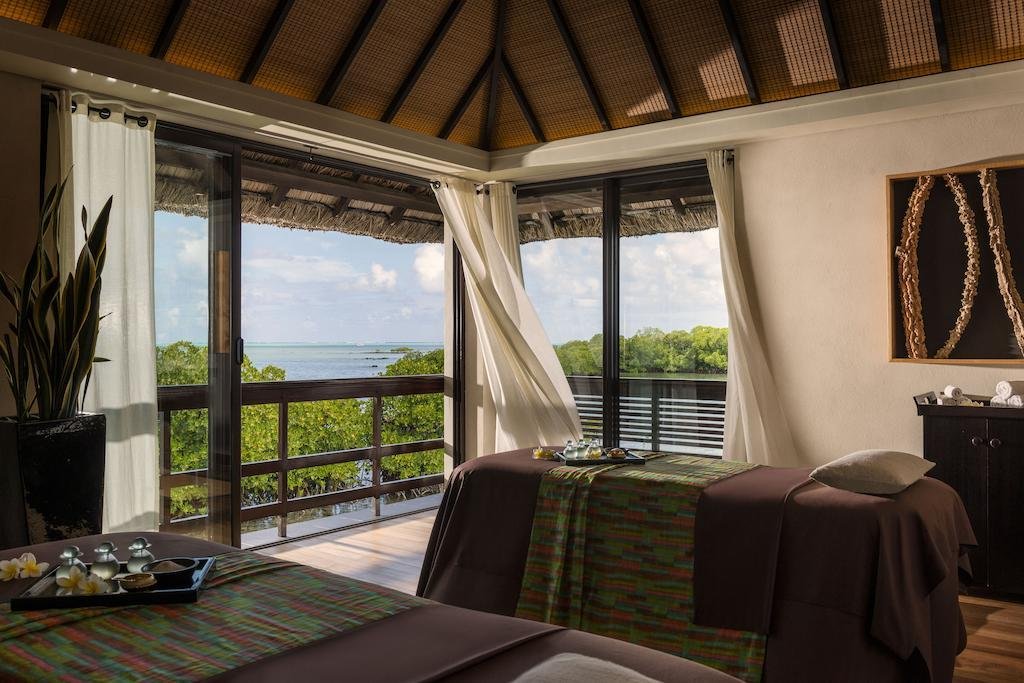 4. يقع سبا منتجع فور سيزونز موريشيوس أت أناهيتا الحائز على جائزة على أعمدة خشبية فوق بحيرة شاطئية ضمن المحيط الهندي.