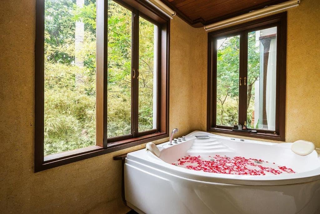 تتمتع كل غرفة في Muang Samui Spa Resort بتصميم داخلي رائع على الطراز التايلاندي التقليدي ، وتشتمل كل غرفة على تلفزيون مع قنوات الكابل ومشغل دي في دي وآلة صنع الشاي والقهوة. يوجد أيضًا مكتب وصندوق ودائع آمن. تحتوي الحمامات الخاصة على جاكوزي ودش مطري منفصل.