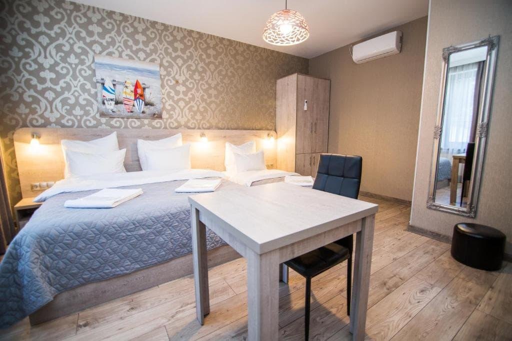 تحتوي غرف الفندق على جهاز تلفاز بشاشة مسطحة وغلاية وميني بار ،كما تضم الغرف علي حمام داخلي عصري مزود بحوض استحمام سبا مع لوازم استحمام مجانية.