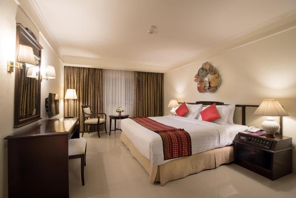 يمكن تقديم مجموعة من الأطباق العالمية في المطعم الذي يعمل على مدار 24 ساعة ، كما يمكن تناول المشروبات والعصائر في بار Tantawan بجوار المسبح.