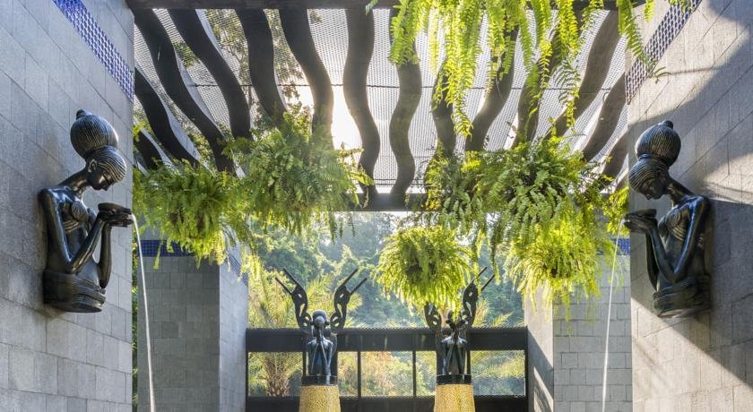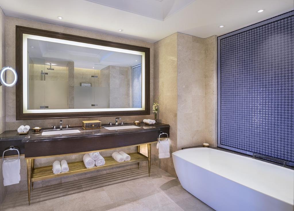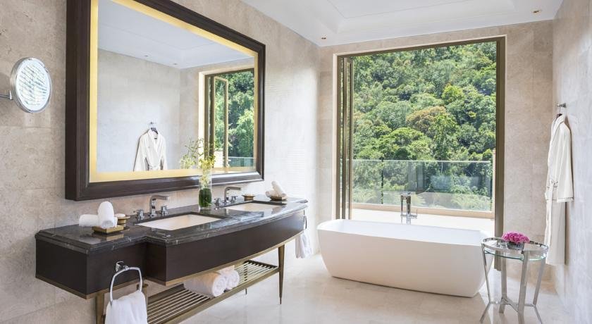 وليست الغرف فقط التي تتميز بالإطلالة فبعض الحمامات توفر إطلالة أكثر من رائعة على الحديقة، فخلف حوض الاستحمام مباشرة يوجد جدار زجاجي يُطل على الحديقة مباشرة لمزيد من الاسترخاء والاستمتاع بالحمام الدافئ.