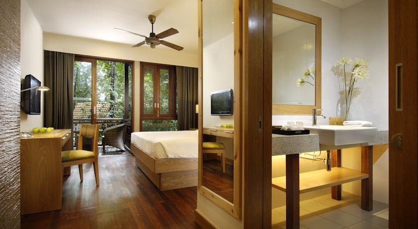 أكثر ما سيلفت انتباه أي زائر هو تصميم الفندق فالفندق يحتوي على350 غرفة موزعين على مجموعة من الشاليهات المرفوعة على أعمدة، وبعض هذه الشاليهات متواجد داخل الغابة أو بوسط المياه القريبة من الشاطئ.